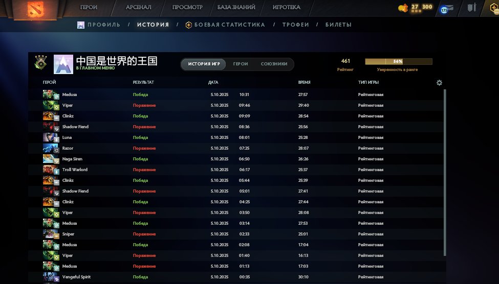 Möchten Sie Dota 2 ohne langes Upgrade sofort mit einem Top-Account, Skins und Achievements spielen? Der 🏅 MMR 461 | 🕒 163 hours | 🛡 11174-Account ist Ihre Eintrittskarte, um das Spiel von der ersten Minute an auf einem hohen Niveau zu spielen.