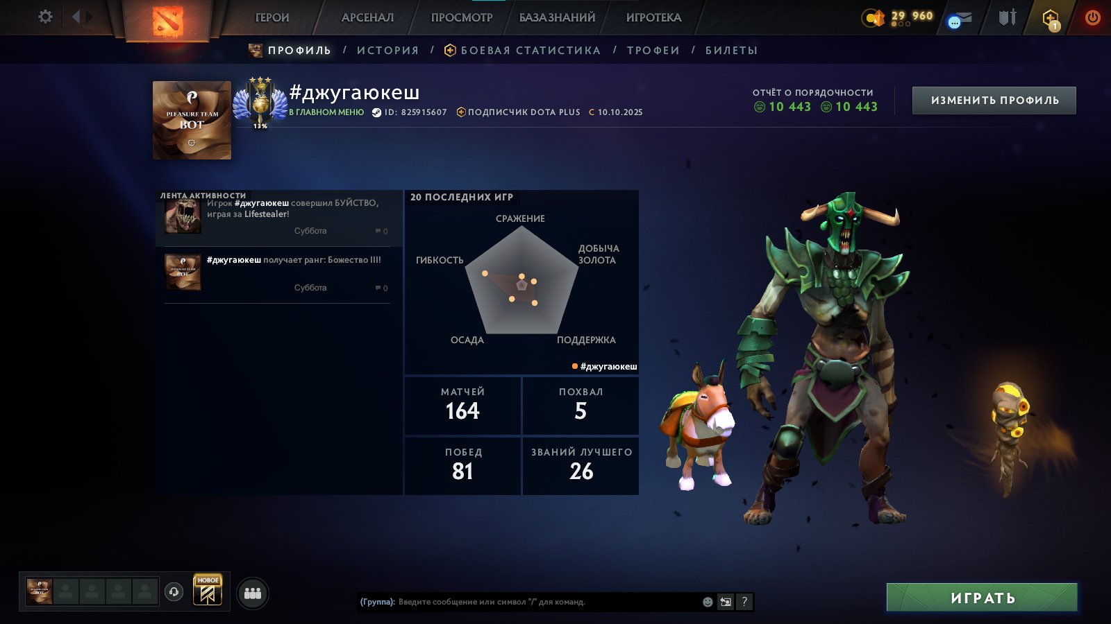 Möchten Sie Dota 2 ohne langes Upgrade sofort mit einem Top-Account, Skins und Achievements spielen? Der 🏅 MMR 5046 | 🕒 139 hours | 🛡 10443-Account ist Ihre Eintrittskarte, um das Spiel von der ersten Minute an auf einem hohen Niveau zu spielen.