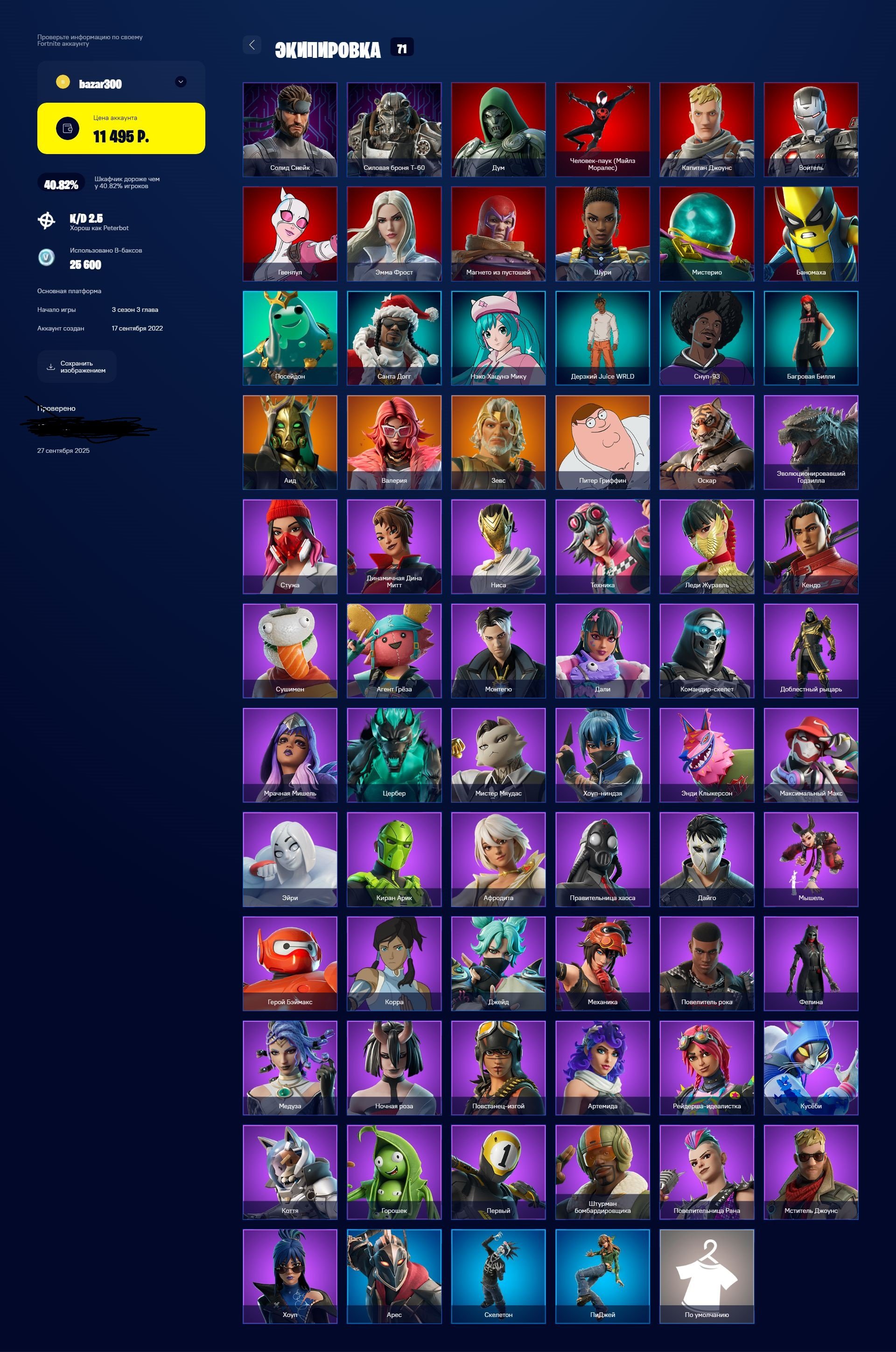 💜 71 skins | 106 pickaxes | 61 gliders