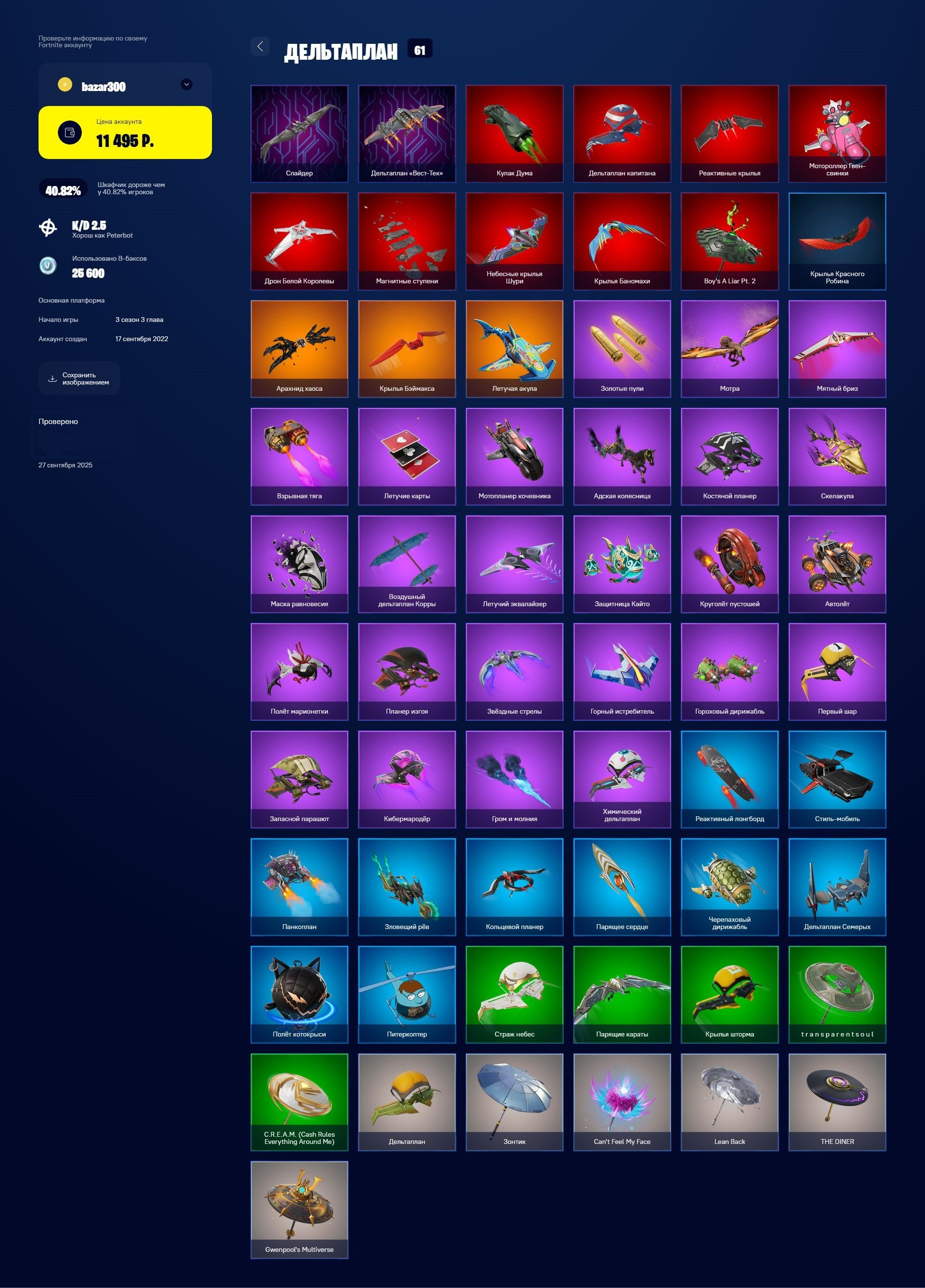 🔥 Don’t miss this opportunity — 💜 71 skins | 106 pickaxes | 61 gliders is available now!