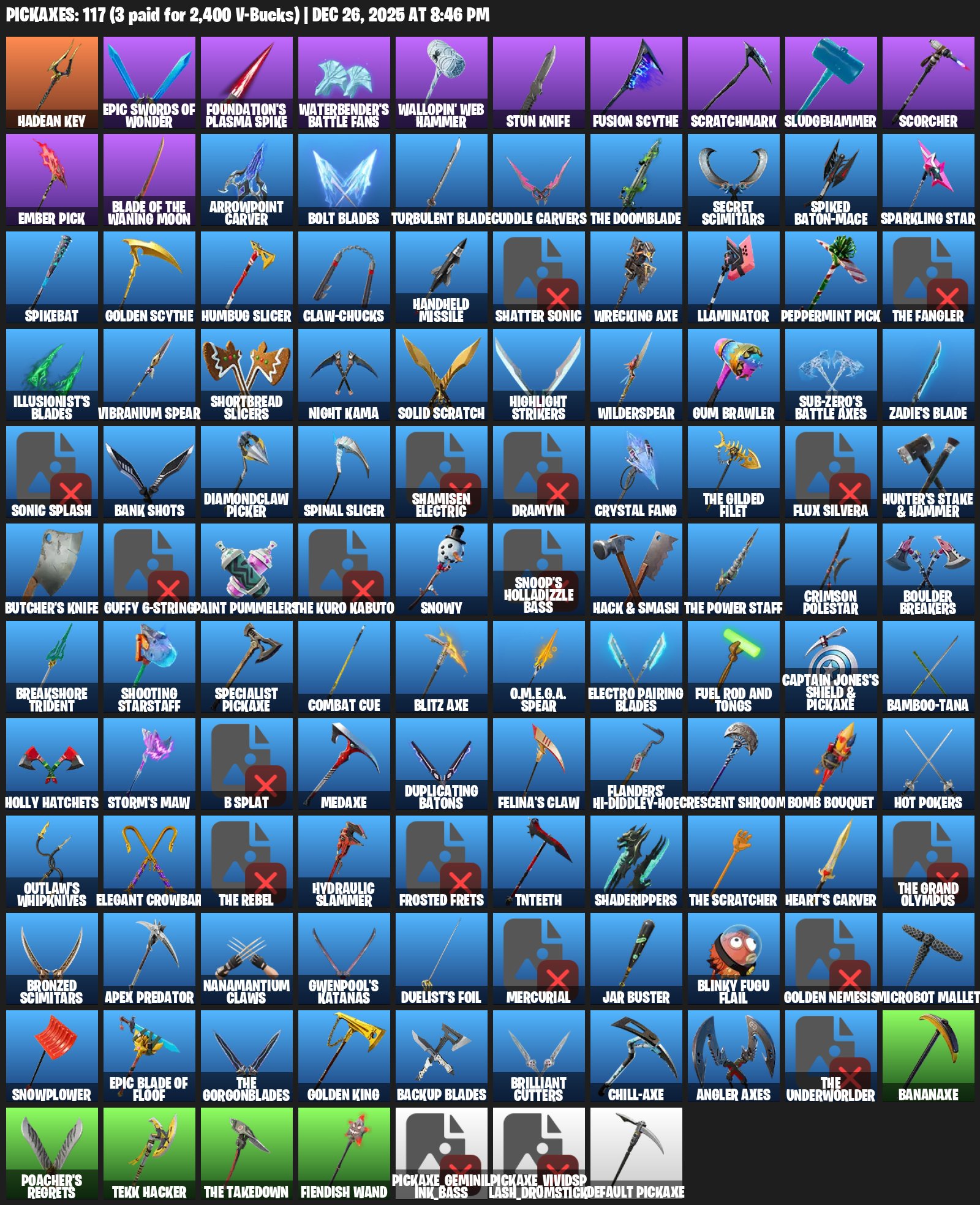 This account features 72 unique skins, each adding variety to gameplay options. In addition to the skins, there are 117 pickaxes and 88 gliders, along with 72 dances. This is full access to cosmetics, allowing players to create unique looks and enhance their gaming experience. The account is ready for play, offering numerous customization options.