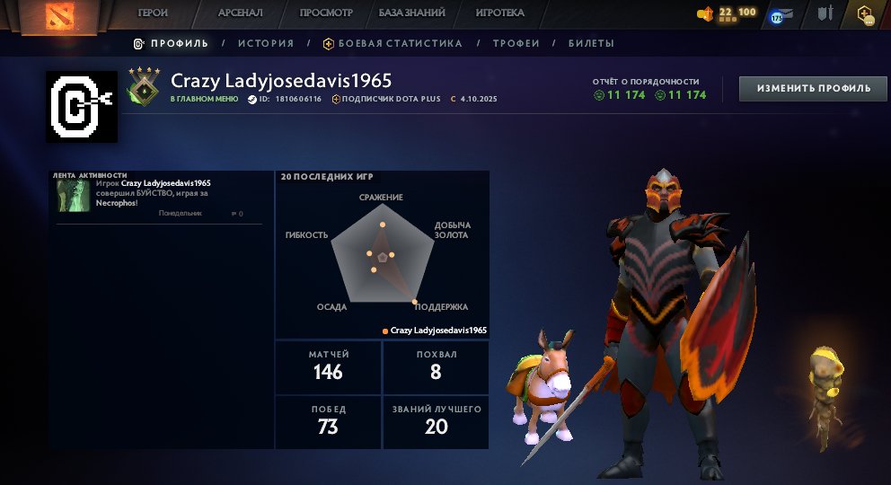 Chcesz rozpocząć grę w Dota 2 bez długiego levelowania, od razu z najlepszym kontem, skórkami i osiągnięciami? Konto 🏅 MMR 460 | 🕒 187 hours | 🛡 11174 to Twój bilet do gry na wysokim poziomie od pierwszej minuty.