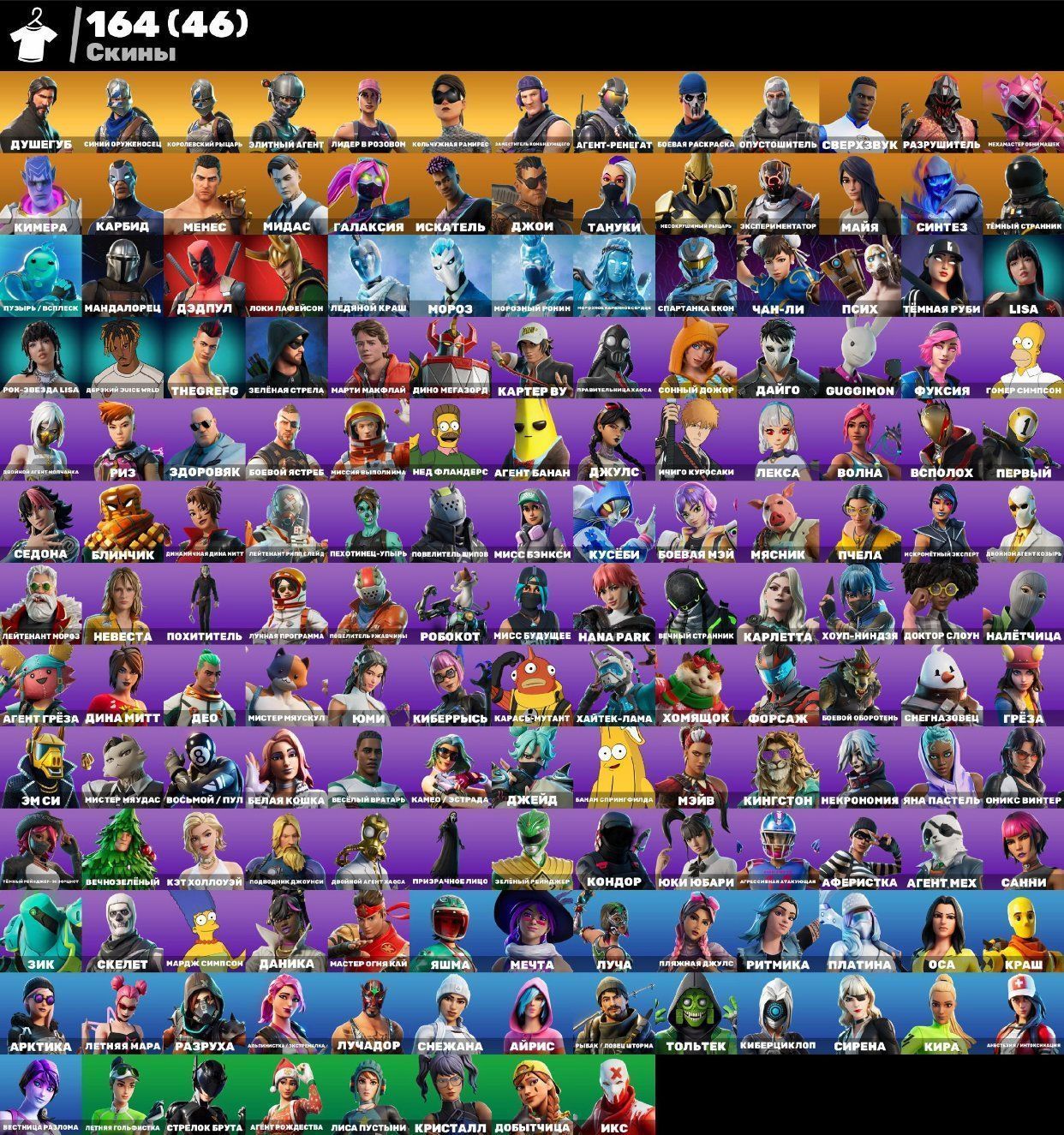 🎨 164 скина | 🌟 Fortnite аккаунт
