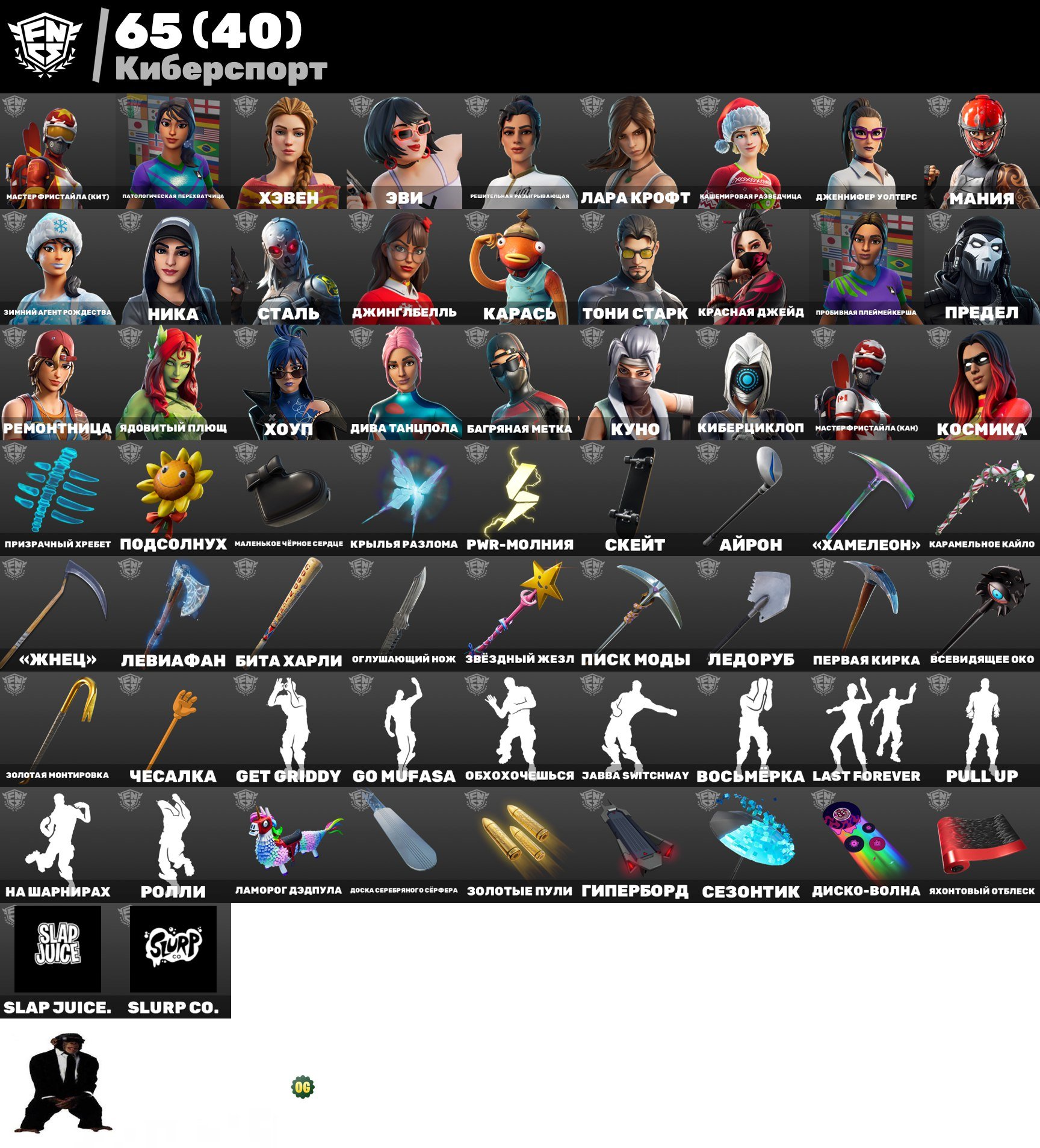 Аккаунт содержит 165 уникальных скинов, включая такие легендарные, как Leviathan и Lara Croft. Состояние персонажей и разнообразие косметики обеспечивают игрокам захватывающий игровой опыт как в PVE, так и в соревновательных режимах. Доброжелательные аксессуары и наборы позволяют выделяться на поле боя. Идеальный вариант для желающих более глубоко погрузиться в мир Fortnite.