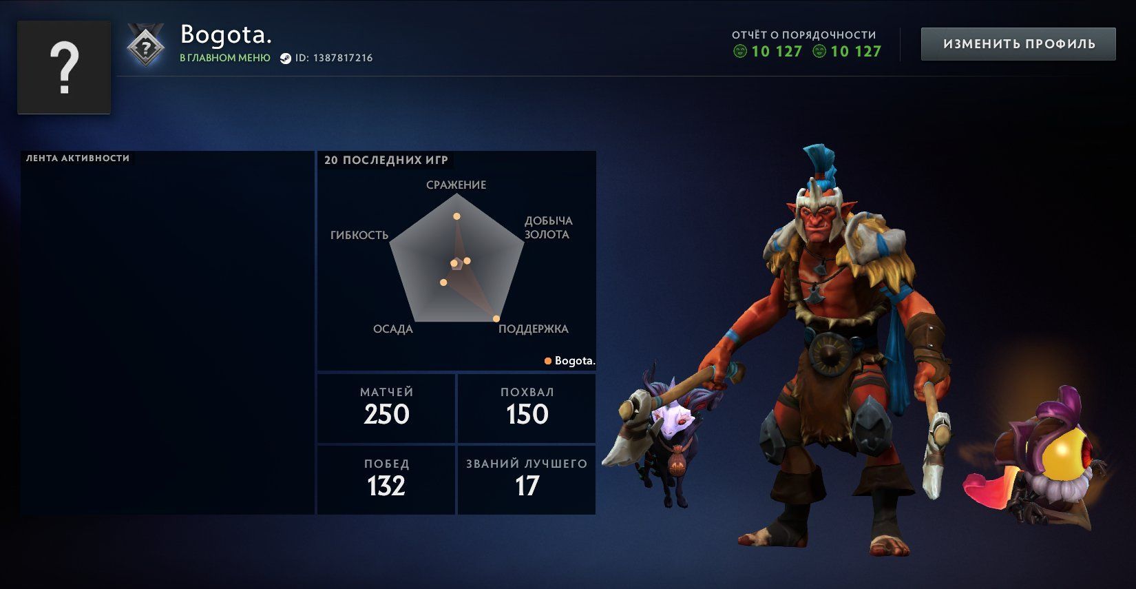 🏅 MMR не встановлений | 🕒 219 годин | 🛡 10127