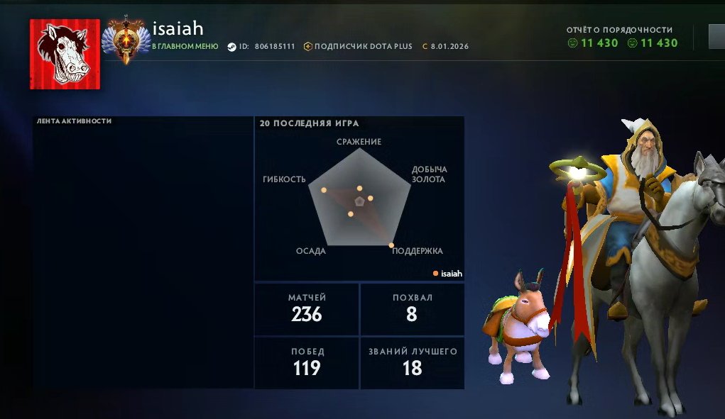 Це реальний, перевірений акаунт Dota 2, повністю готовий до передачі новому власнику. Безпечно. Швидко. Вигідно.