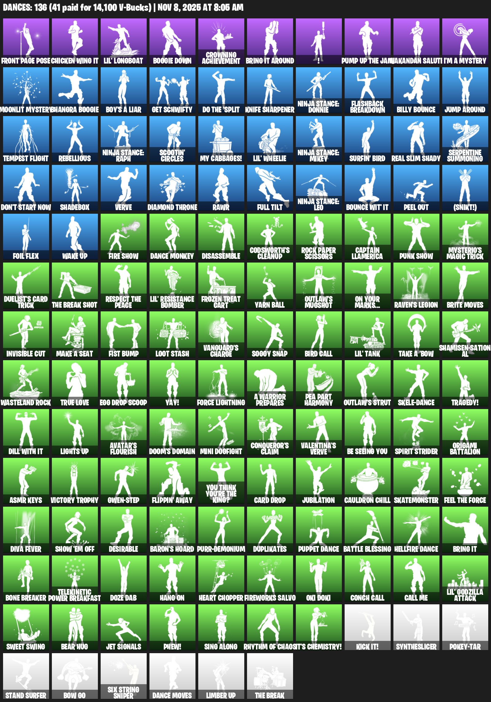Цей акаунт має 117 унікальних скінів, включаючи John Wick, Trinity Trooper та Marshall. Гравці отримують доступ до широкого спектра косметики, що ідеально підходить для PVE та змагальних режимів. Крім того, 147 пікапів та 136 емотів на рахунку ще більше збагачують ігровий досвід. Завдяки 93 планерам та високому рівню, акаунт забезпечує чудову кастомізацію персонажів. Чудовий вибір для тих, хто бажає повноцінно насолоджуватись Fortnite.