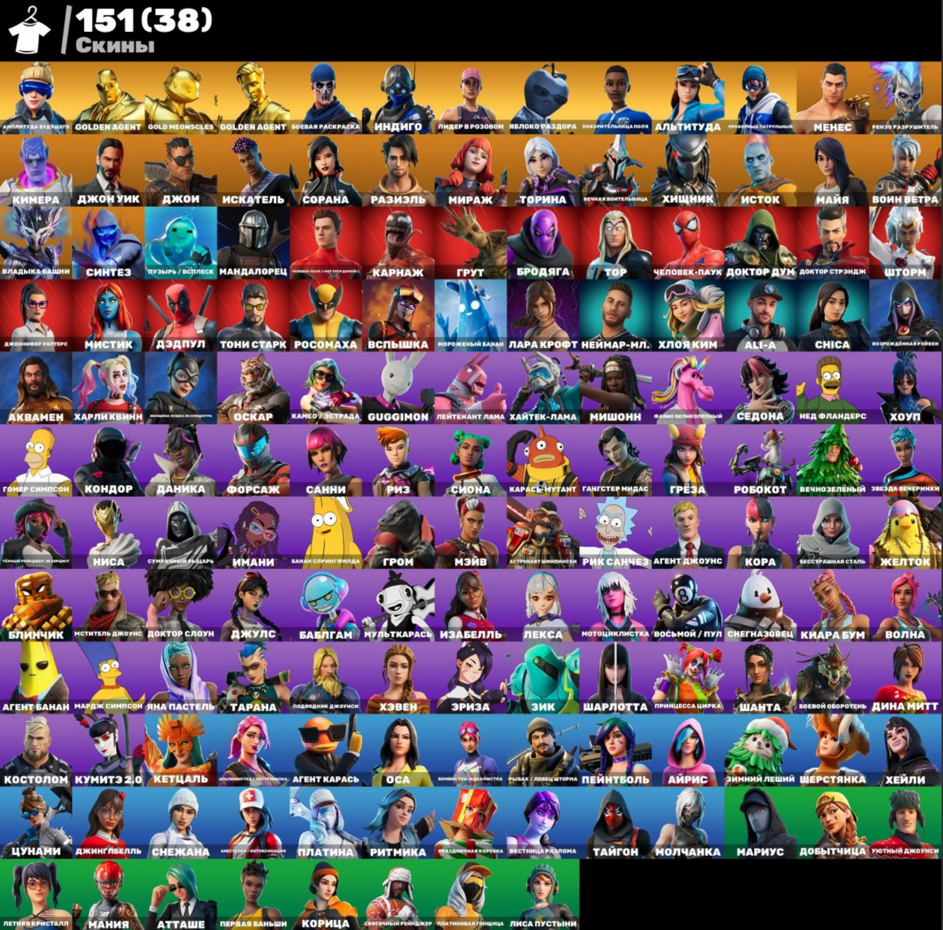 Цей акаунт містить 162 унікальних скінів та широкий асортимент косметики. Повністю оновлені бойові пропуски 11-20 сезонів і частково оновлені пропуски сезонів 24, 28, 21, 23, 26, 27 і 37 пропонують максимальну гнучкість. Крім того, в колекції є безліч куплених скінів, емоцій і кирок, включаючи культового Джона Уіка. Повний доступ до косметики дозволить розпочати захоплюючий ігровий процес відразу. Це шанс для гравців отримати обширний набір косметичних предметів та унікальні можливості кастомізації у Fortnite.