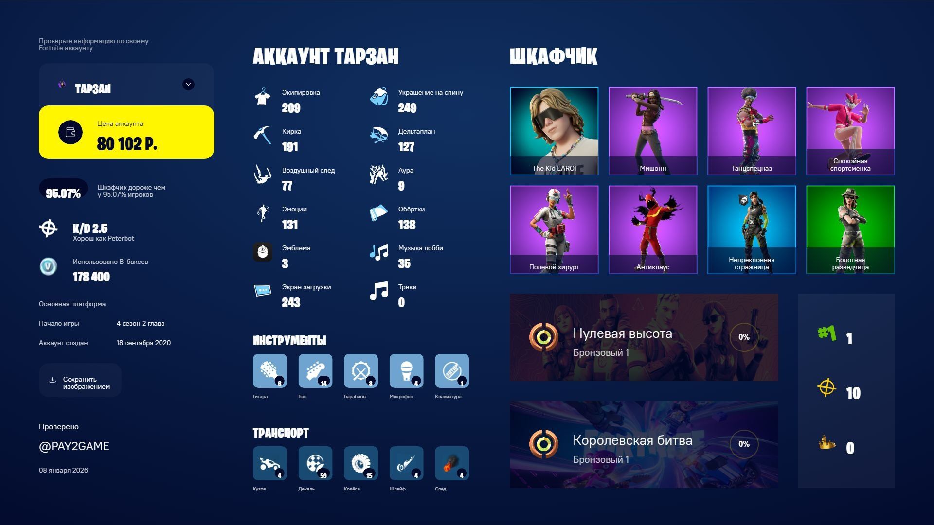🎨 209 скінів | 🌟 Fortnite акаунт