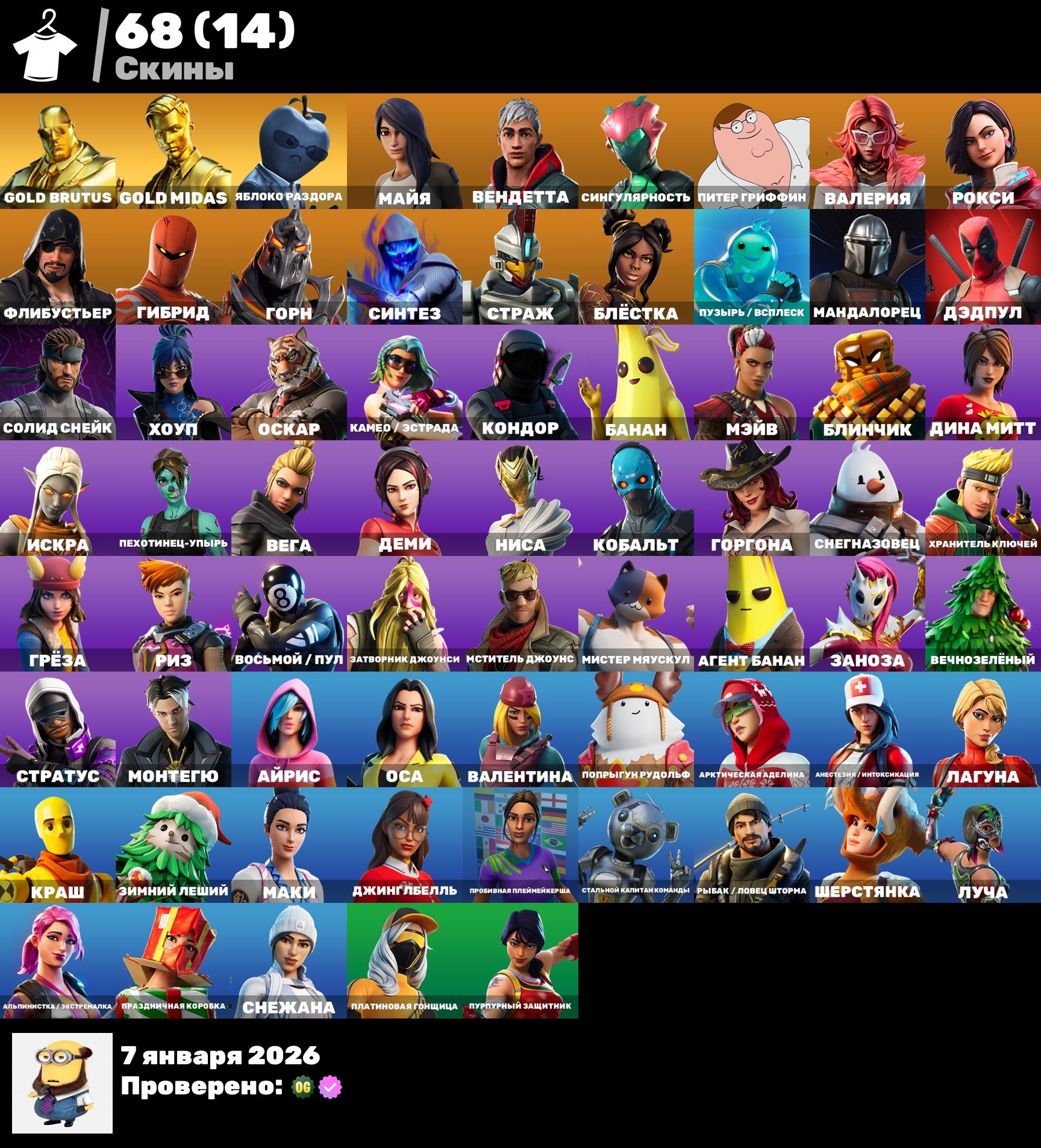 Fortnite — одна з найпопулярніших ігор у світі, з мільйонами фанатів. Купуючи акаунт 🎨 54 скінів | 🌟 Fortnite акаунт, ти одразу потрапляєш у топ — грай з перевагою, економ свій час та насолоджуйся.