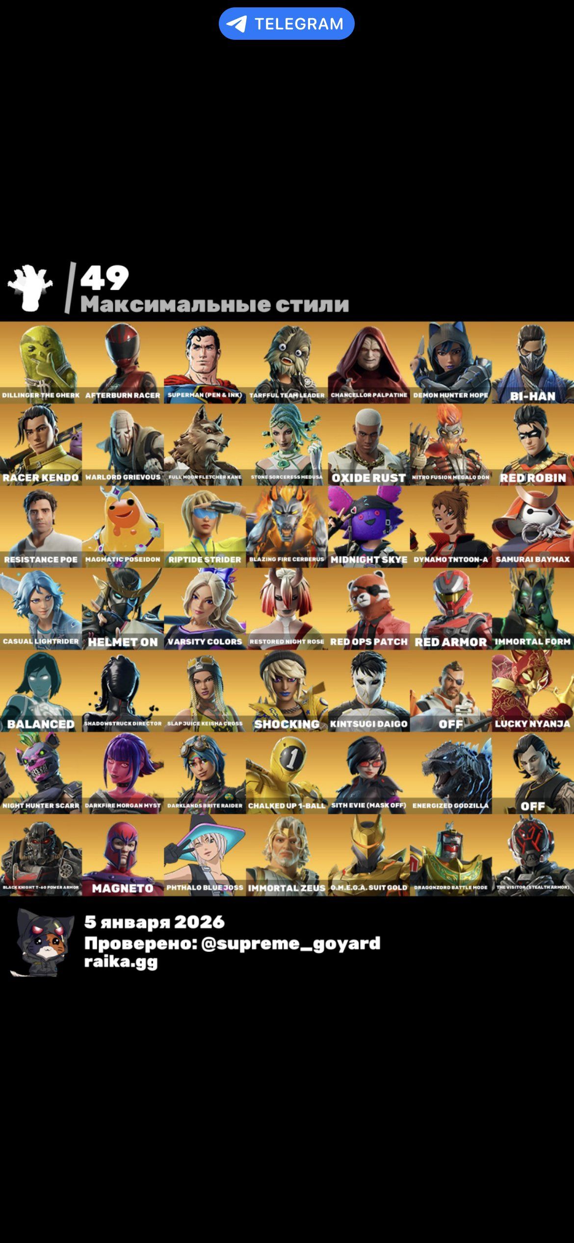 Хочеш розпочати гру в Fortnite без довгого прокачування, одразу з топовим акаунтом, скінами та досягненнями? Акаунт 🎨 100 скінів | 🌟 Fortnite акаунт — це твій квиток у гру на високому рівні з першої хвилини.