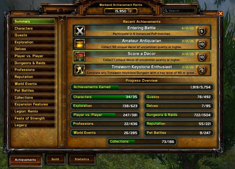 Акаунт World of Warcraft на європейському PvP сервері, створений у серпні 2017 року, на Draenor / Ravencrest. Поряд з персонажем 80 рівня, Що підтверджує готовність до висококласного PvP контенту, відзначається також, що аккаунт має 4 персонажів, повністю обладнаних для PvP, серед яких Демон Кілер з рейтингом 2400 Solo Shuffle, що свідчить про високий рівень гри. Включає в себе всі елітні PvP набори для усіх класів на TWW Season 3, багато унікальних предметів, 500 маунтів (включно з рідкісними), і 274 домашніх тварини. Серйозні гравці можуть розпочати одразу, всі персонажі готові до PvP.