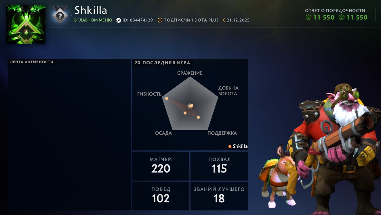 Kaufen Sie einen 🏅 MMR 150 | 🕒 160 hours | 🛡 11550 für Dota 2 - starten Sie jetzt mit einem Vorteil