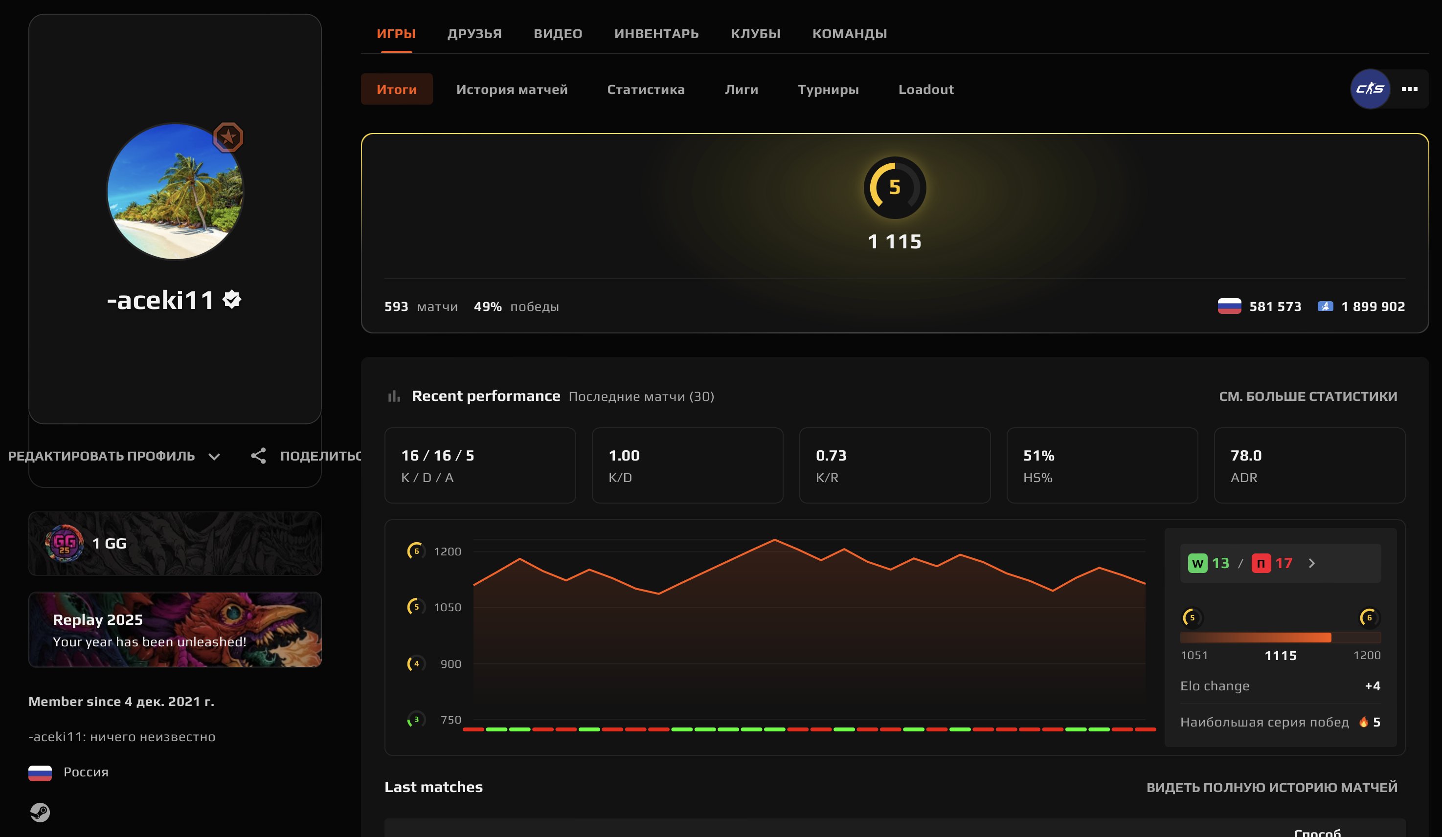 🏆 Faceit LVL 4 | 🎯 1115 ELO | 🕒 593 матча — Готов к конкурентным играм!