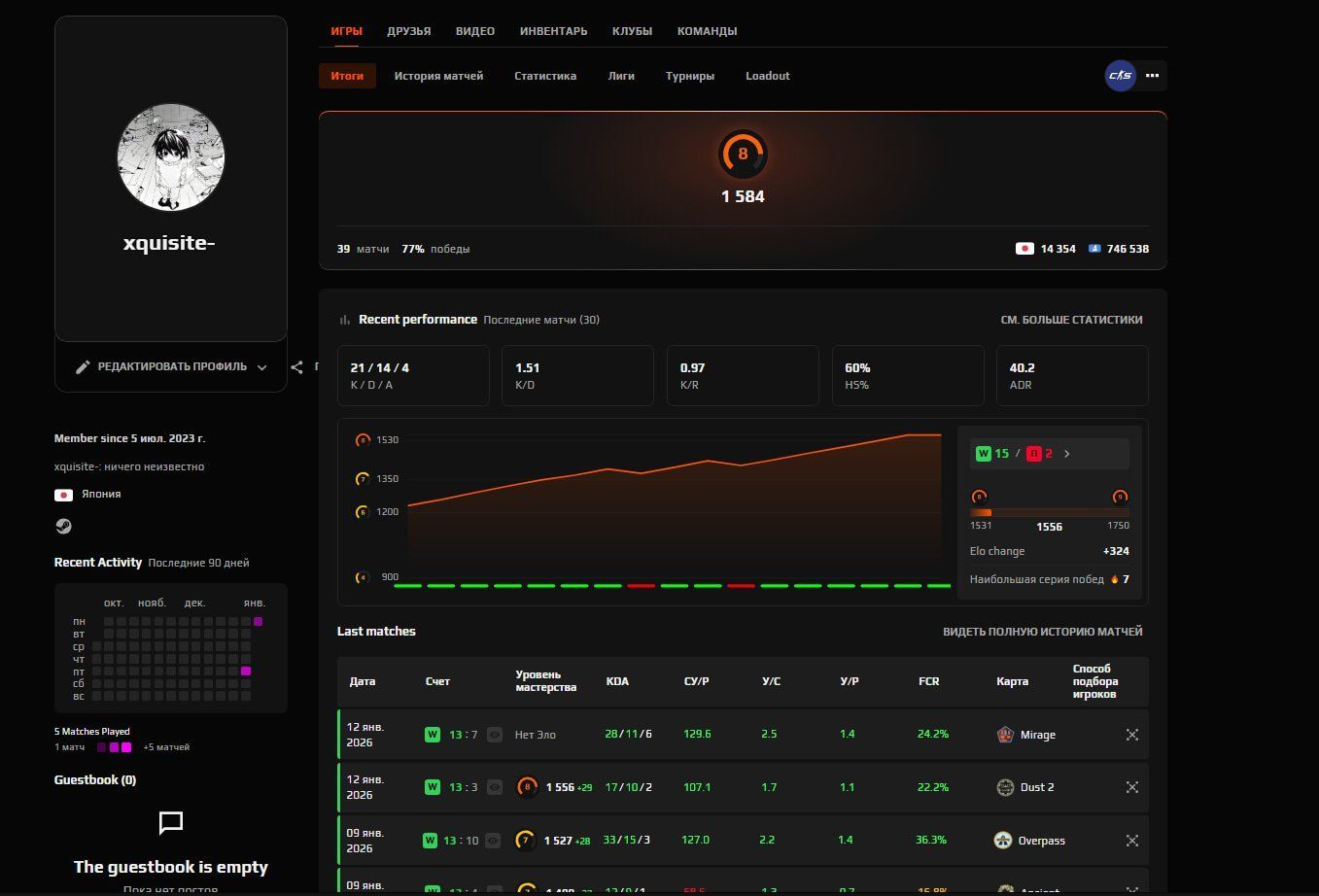 🔥 Не зволікай — акаунт 🎯 FACEIT LVL 8 | 🔥 1584 ELO | 🕒 39 матчів — Готовий до Ранкету доступний прямо зараз!